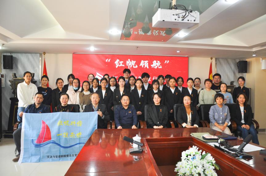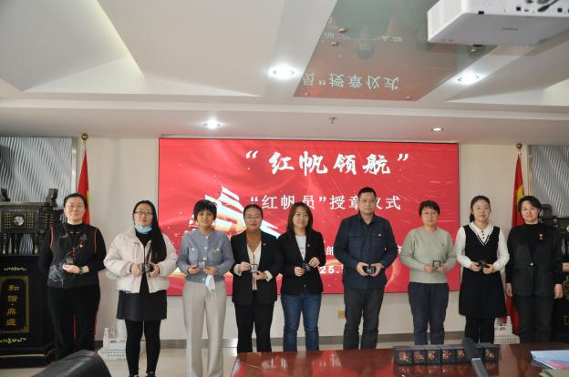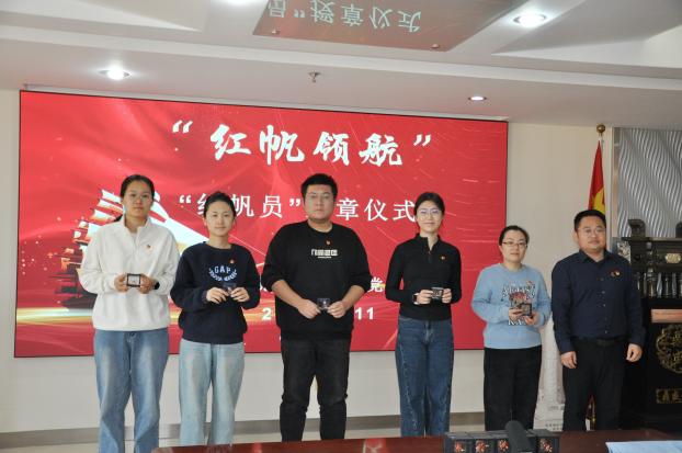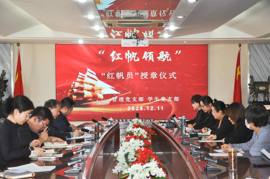 2025年12月11日,管理党支部与学生党支部在匠心楼1011第一会议室联合举行“红帆员”授章仪式。支部全体党员及“红帆”活动学生志愿者代表共同参加。