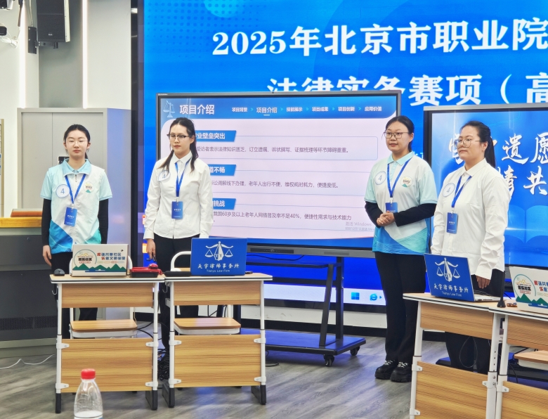实践育人。校地协同推动四批学生深入区司法局、公证处一线实习,在真实法治场景中淬炼成长,成为京西法治实践的“生力军”。司法局专家全程指导学生在世界职业院校技能大赛中斩获银奖,将一线实战经验有效转化为育人资源。