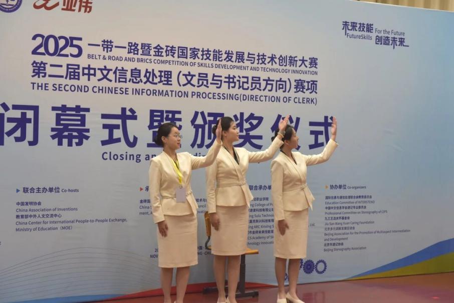 近日,2025“一带一路”暨金砖国家技能发展与技术创新大赛中文信息处理(文员与书记员方向)赛项全国总决赛顺利举行。本次大赛汇聚了来自全国11个省、22所院校的35支参赛队伍,共计116名选手同场竞技。由北京政法职业学院、北京速录科技有限公司等单位共同承办。